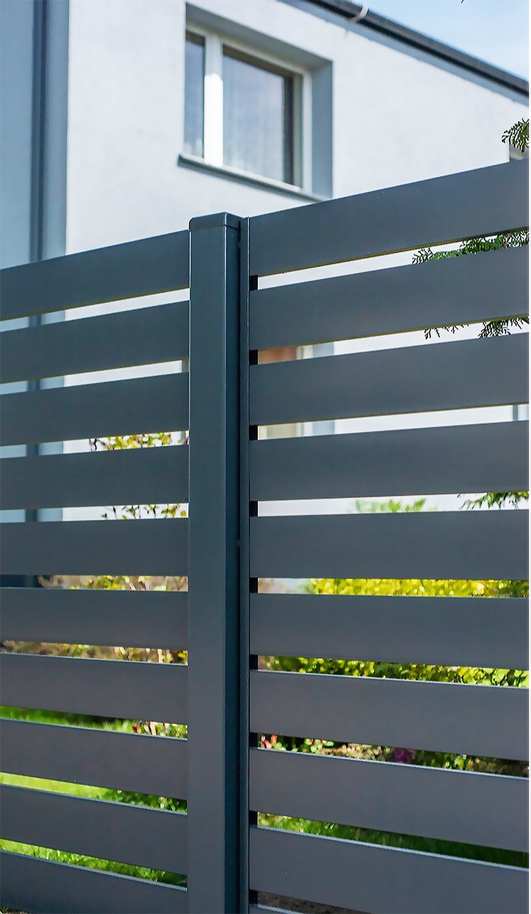 - Minimalistyczne formy, gładkie powierzchnie i szeroka gama kolorystyczna (dzięki malowaniu proszkowemu) sprawiają, że ogrodzenia aluminiowe idealnie pasują do współczesnej architektury.