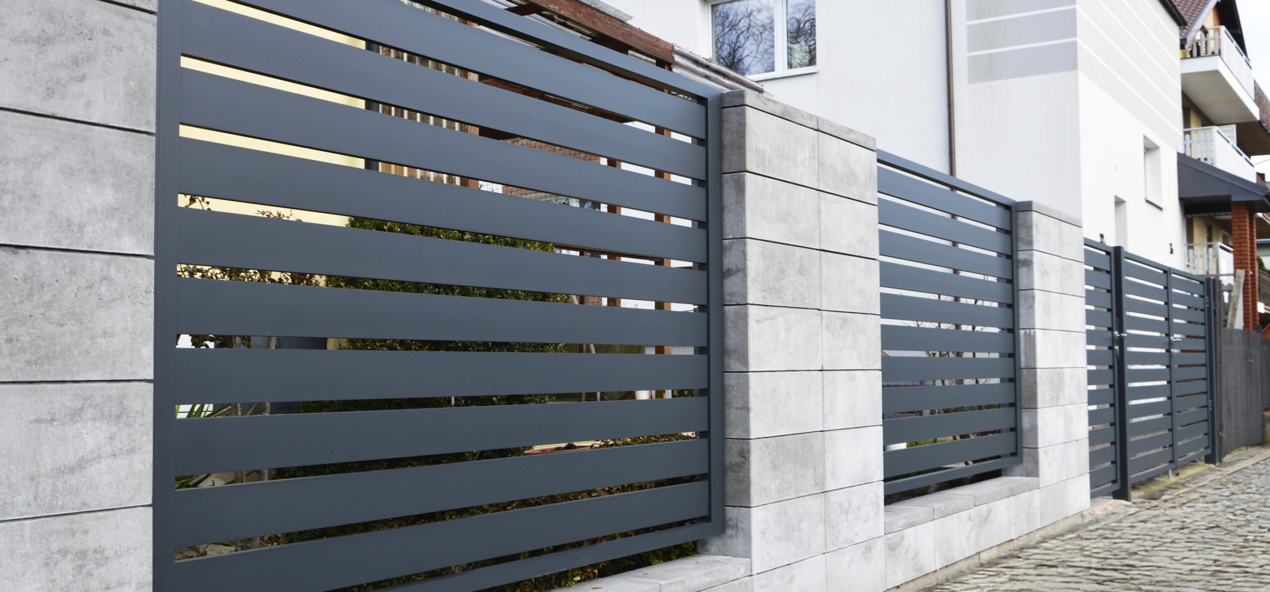 - Minimalistyczny design ogrodzeń aluminiowych najlepiej komponuje się z nowoczesnymi budynkami – przy domach w stylu tradycyjnym może wyglądać zbyt surowo.